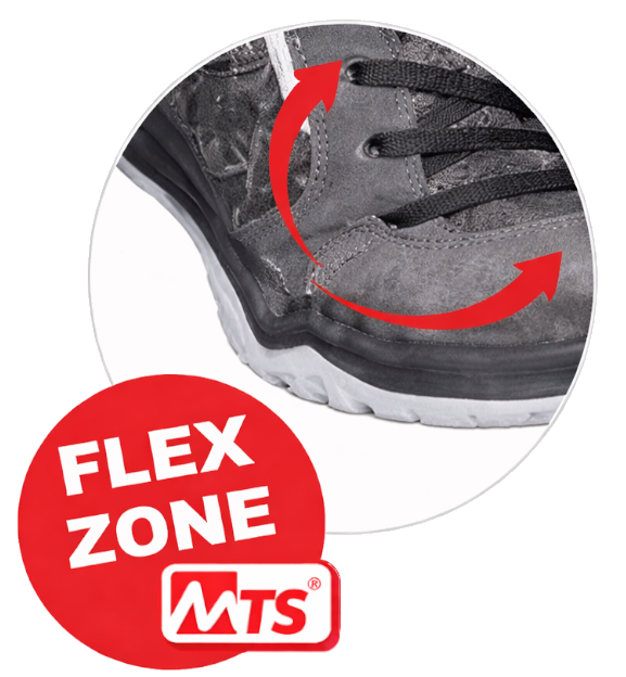 FLEX ZONE ® to technologia zwiększająca komfort chodzenia poprzez precyzyjne dopasowanie punktu zginania podeszwy do naturalnego ruchu stopy. Dzięki temu każdy krok jest bardziej płynny, ergonomiczny i mniej obciążający.